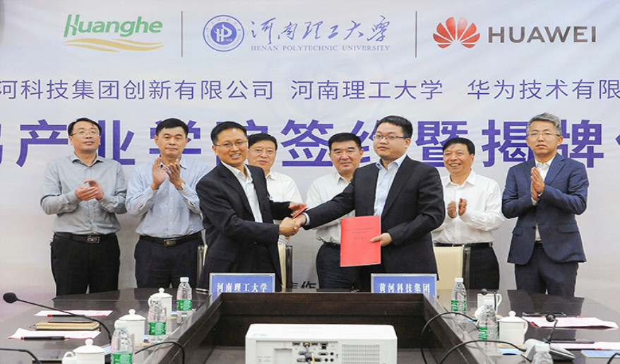 365英国上市官网在线院长孙君顶与黄河科技集团创新有限公司董事长冯武分别代表校企双方签署鲲鹏产业学院共建协议